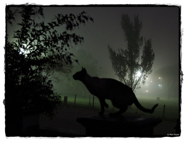 Cats are not the easiest of animals to photograph at the best of times, but try it in the dark when they are on the prowl and refuse to cooperate and it is almost impossible. Here he paused long enough to coincide with the shutter speed and give me a nice silhouette.